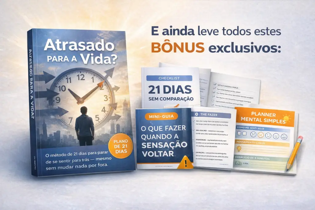 Esse é exatamente o mesmo processo que eu e as pessoas que acompanhei usamos para sair da sensação de estar atrasado na vida de forma prática e acessível.